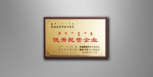 2008年12月,中共呼和浩特市委員會/呼和浩特市人民政府頒發(fā):紀(jì)念改革開放30周年“優(yōu)秀民營企業(yè)”。