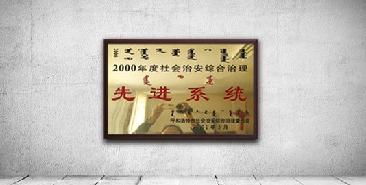 2001年3月,被呼和浩特市社會治安綜合治理委員會評為,“2000年度社會治安綜合治理先進系統(tǒng)”。