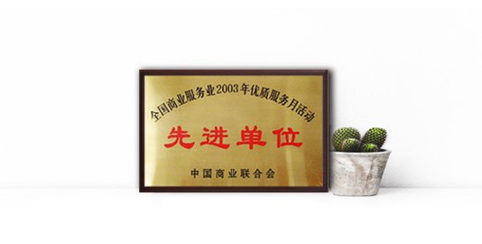 中國商業(yè)聯(lián)合會,獎給“全國商業(yè)服務(wù)業(yè)2003年優(yōu)質(zhì)服務(wù)月活動先進單位”。