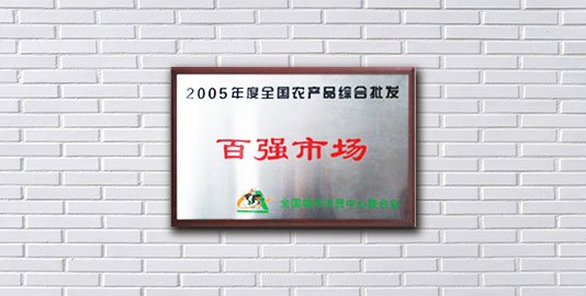 全國城市農(nóng)貿(mào)中心聯(lián)合會,獎給:2005年度全國農(nóng)產(chǎn)品綜合批發(fā)“百強市場”。