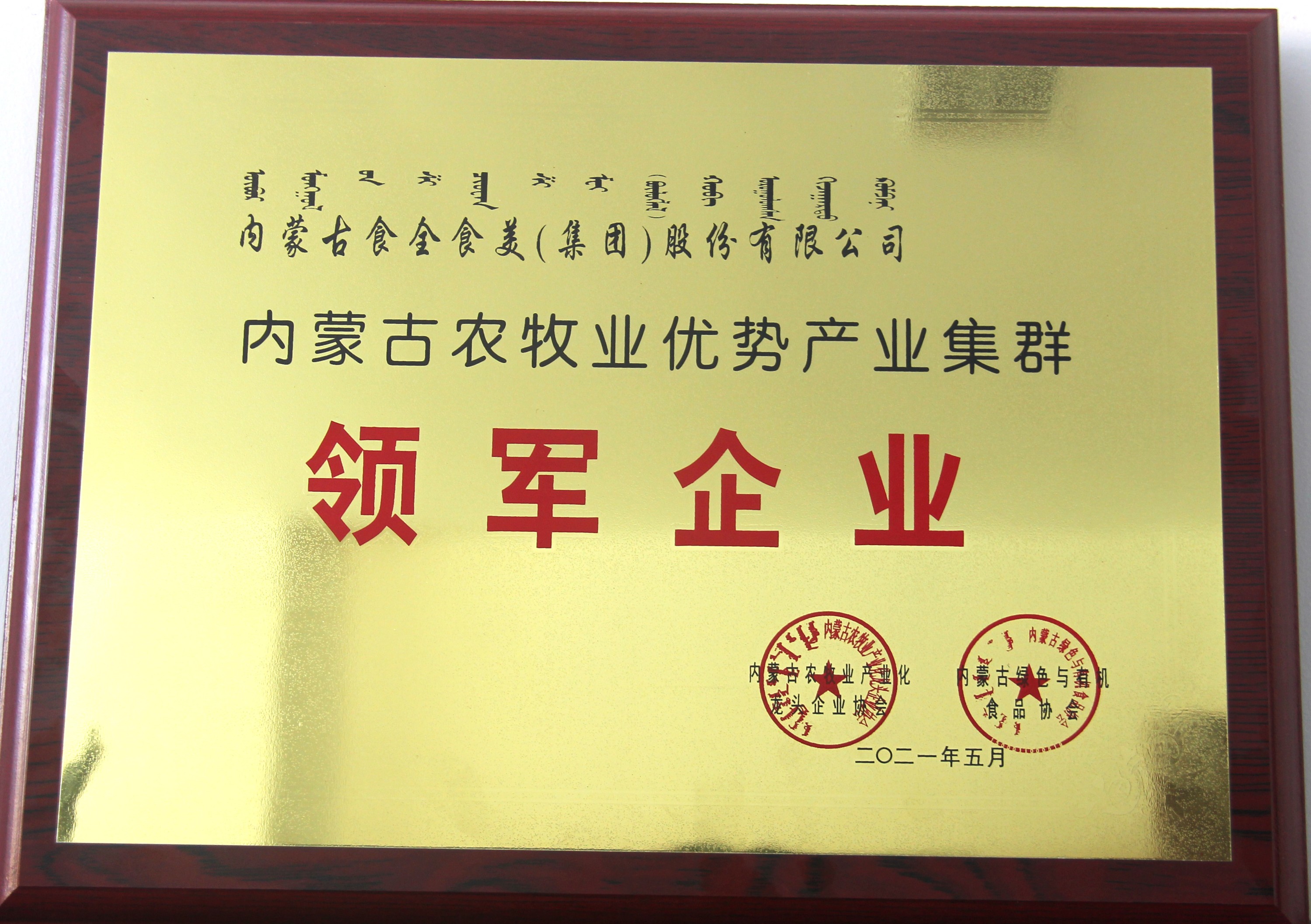 2021年6月,內(nèi)蒙古農(nóng)牧業(yè)產(chǎn)業(yè)化龍頭企業(yè)協(xié)會和內(nèi)蒙古綠色與有機食品協(xié)會聯(lián)合發(fā)布“內(nèi)蒙古‘十三五’產(chǎn)業(yè)扶貧優(yōu)秀龍頭企業(yè)”與“內(nèi)蒙古農(nóng)牧業(yè)優(yōu)勢產(chǎn)業(yè)集群領(lǐng)軍企業(yè)”名單,并現(xiàn)場進行表彰,內(nèi)蒙古食全食美股份有限公司榮獲“內(nèi)蒙古農(nóng)牧業(yè)優(yōu)勢產(chǎn)業(yè)集群領(lǐng)軍企業(yè)”稱號。