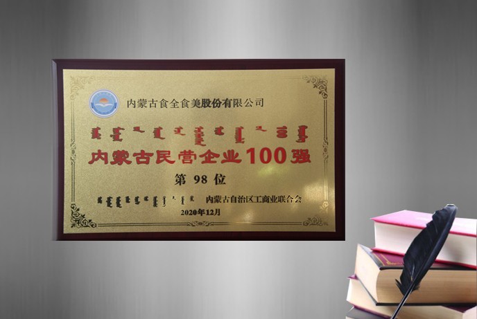 2020年12月12日,在2020內(nèi)蒙古民營企業(yè)100強發(fā)布會上,我公司獲得“內(nèi)蒙古民營企業(yè)100強”榮譽稱號。